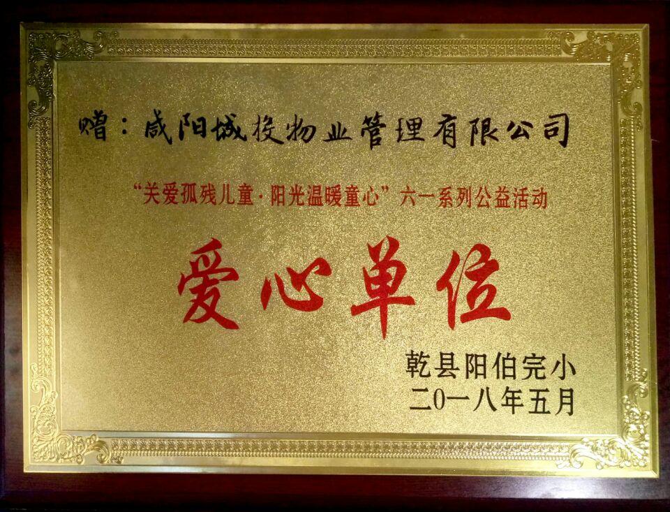 2018年5月榮獲“愛(ài)心單位”榮譽(yù)